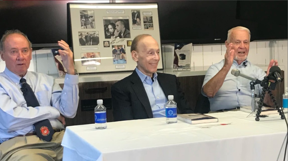 Bruce Givner, Paul Leeper and John Barrett answer questions during a press conference announcing the release of Givner’s new book, “MY WATERGATE SCANDAL TELL-ALL: How I Unwittingly Caused This Historic Event” in the Watergate office building in Washington, D.C. on June 10, 2019.